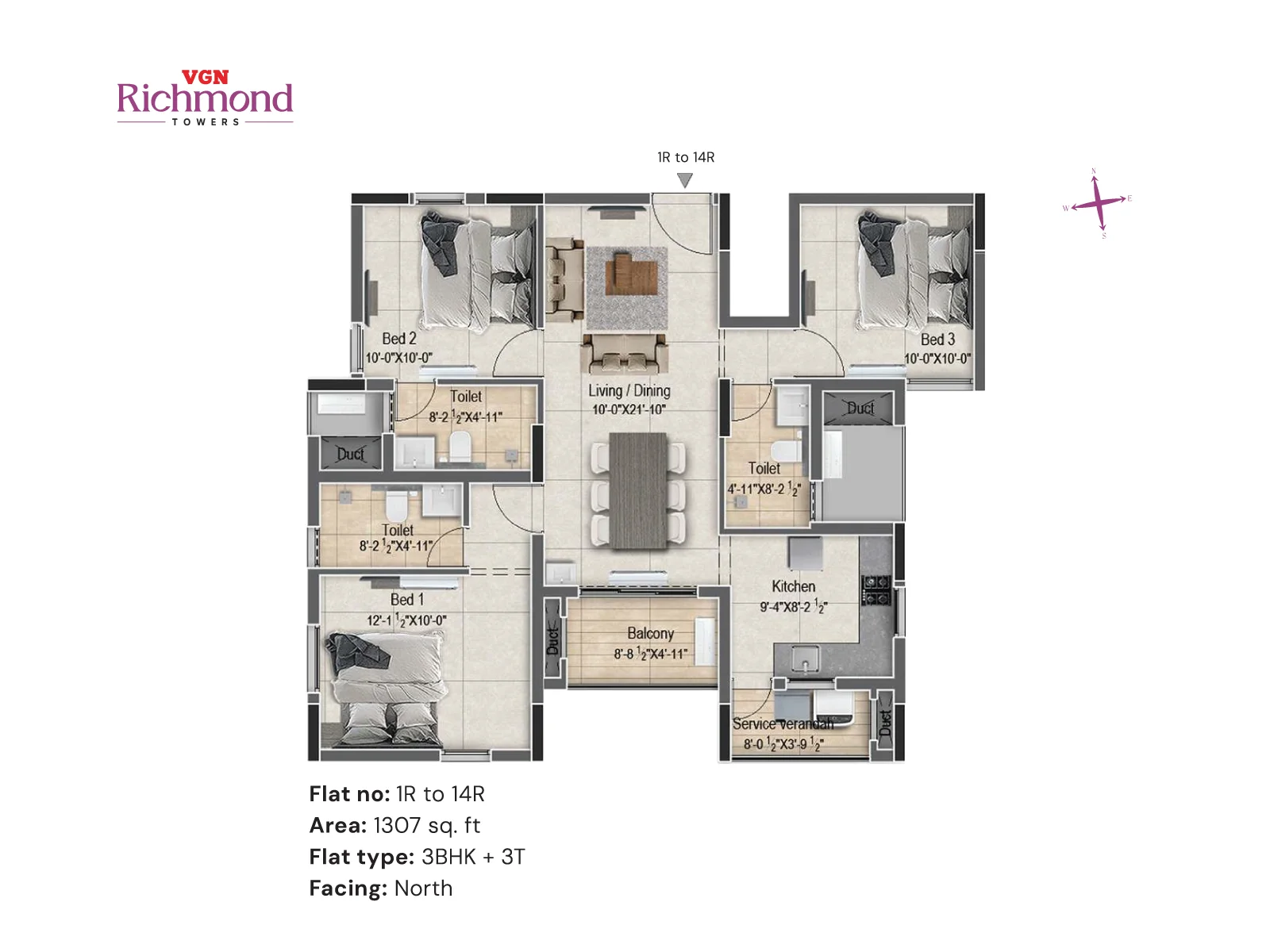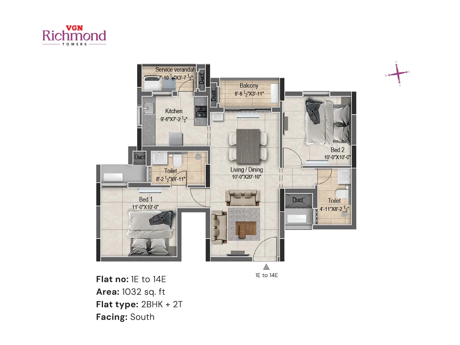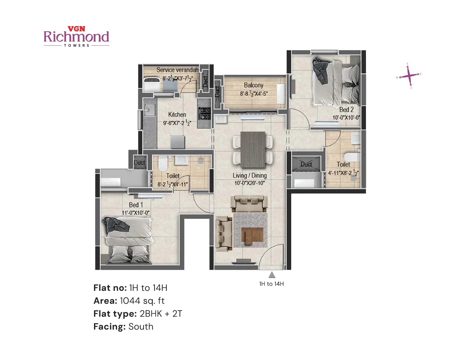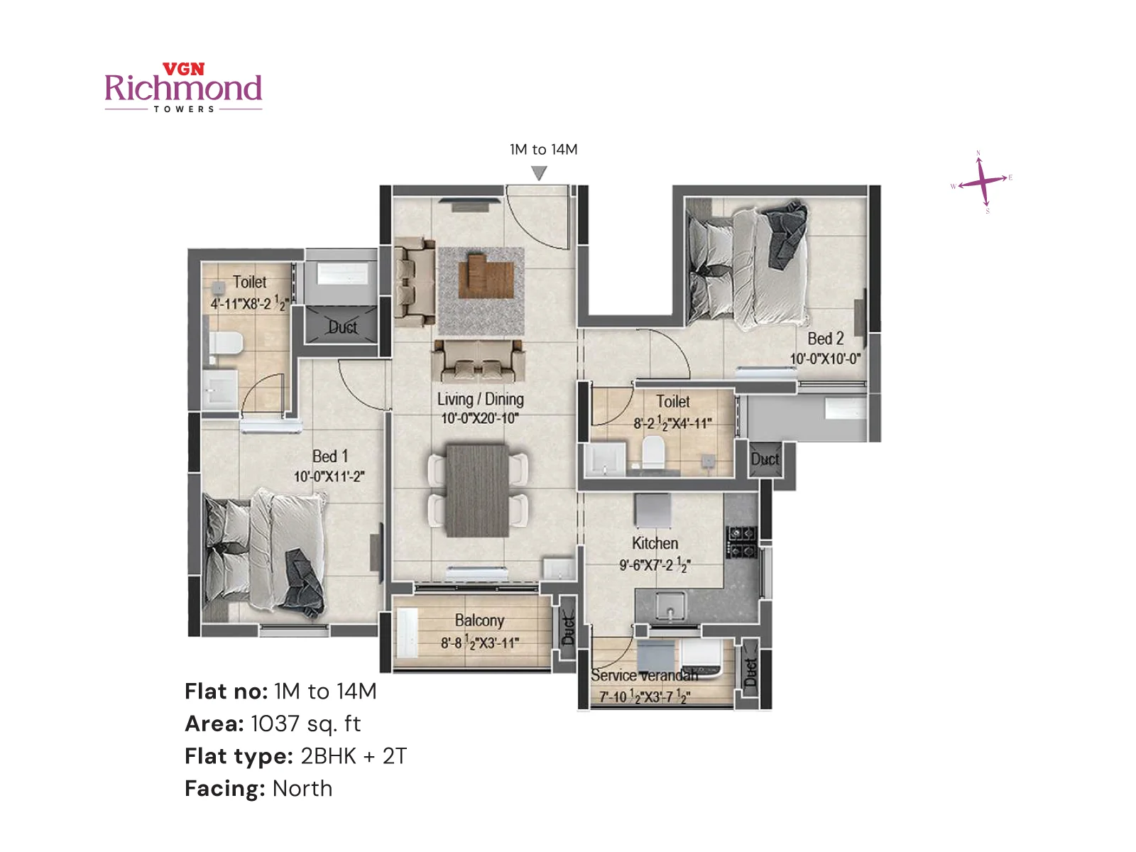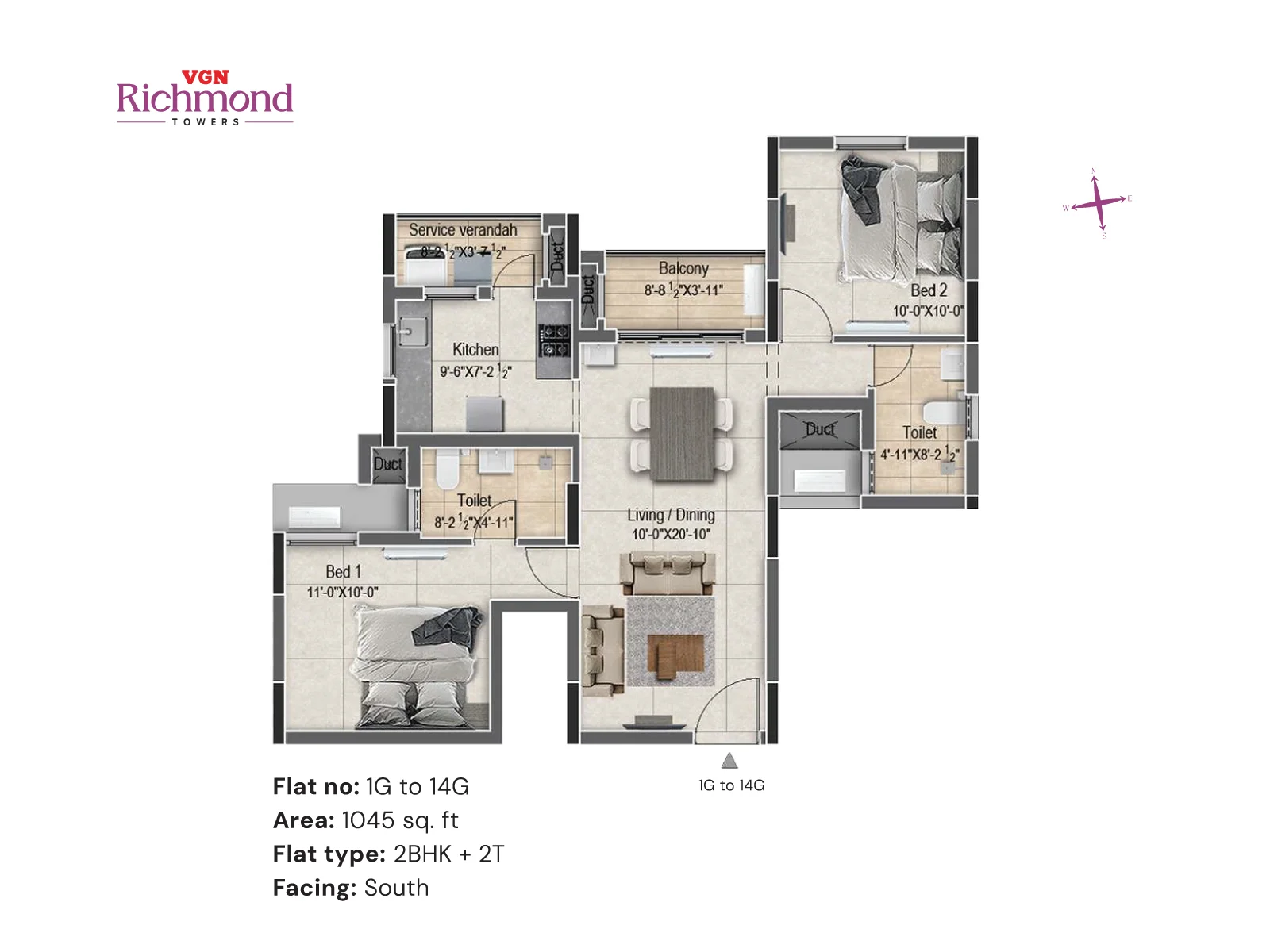 VGN Richmond Towers is strategically located in the heart of Guindy, just 1 km from Kathipara Junction, opposite Hotel Hilton, and Ekkatuthangal Metro Station is within walking distance. Out of 10.46 acres of prime land in the heart of Guindy, VGN Richmond Towers is offering 14 floors of luxurious 2 & 3 BHK residences with sophistication and convenience.