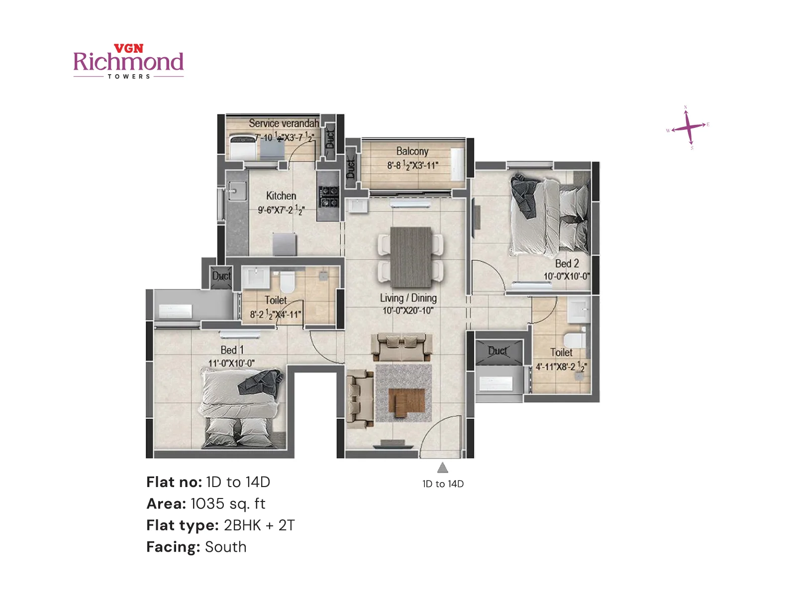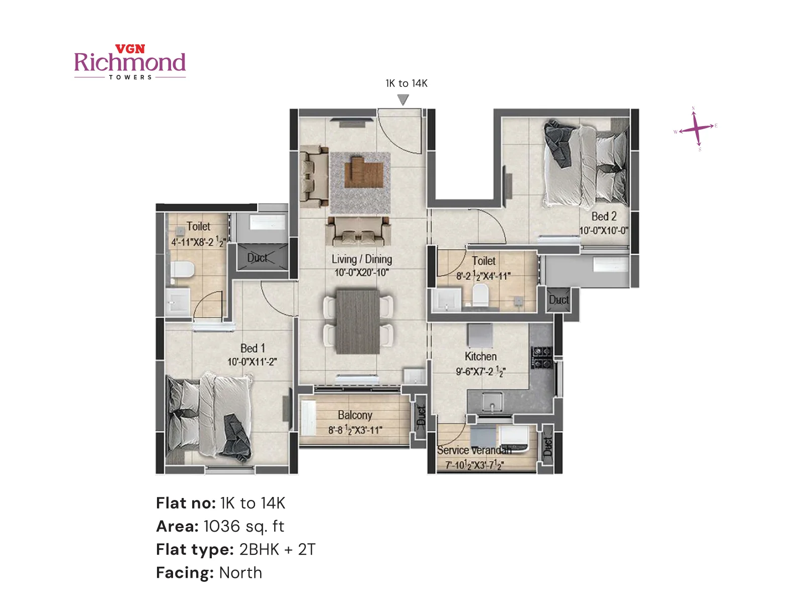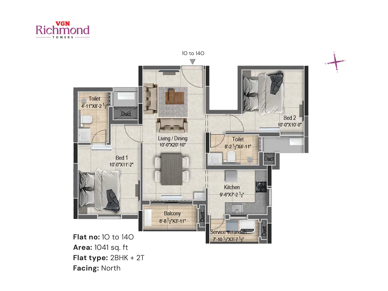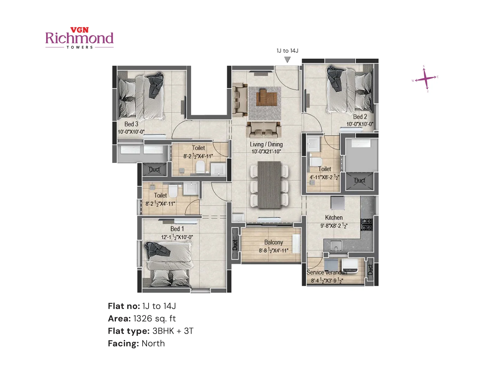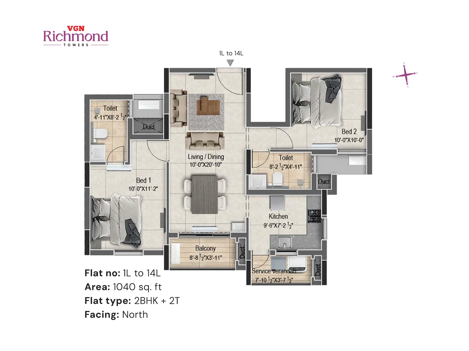 VGN Richmond Towers is strategically located in the heart of Guindy, just 1 km from Kathipara Junction, opposite Hotel Hilton, and Ekkatuthangal Metro Station is within walking distance. Out of 10.46 acres of prime land in the heart of Guindy, VGN Richmond Towers is offering 14 floors of luxurious 2 & 3 BHK residences with sophistication and convenience.